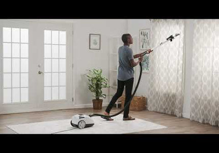 The Jill compact canister vacuum features a HEPA media bag and filter, plus a unique floor tool to clean bare floors and area rugs. This spunky, lightweight little canister comes with handy tools that mount on the metal wand and are perfect for cleaning nooks, blinds and everything else above the floor. Dual-certified HEPA filtration ensures dust, dander and other particles are captured, keeping the whole household safe and healthy. The Jill includes a full-bag indicator and a metal wand that extends to 10-feet, making cleaning a breeze.
